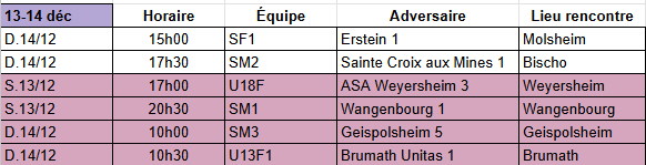 Matchs du Week End et suivant Résultats de la semaine passée Ci-contre le tableau des horaires d'entraînements Contactez nous!Veuillez activer JavaScript dans votre navigateur pour remplir ce formulaire.Veuillez activer JavaScript dans votre navigateur pour remplir ce formulaire.Nom *PrénomNomE-mail *Sujet *Commentaire ou message *Mentionner votre demandeEnvoyer Pour toute demande vous pouvez nous contacter à l'aide du formulaire ci-contre.